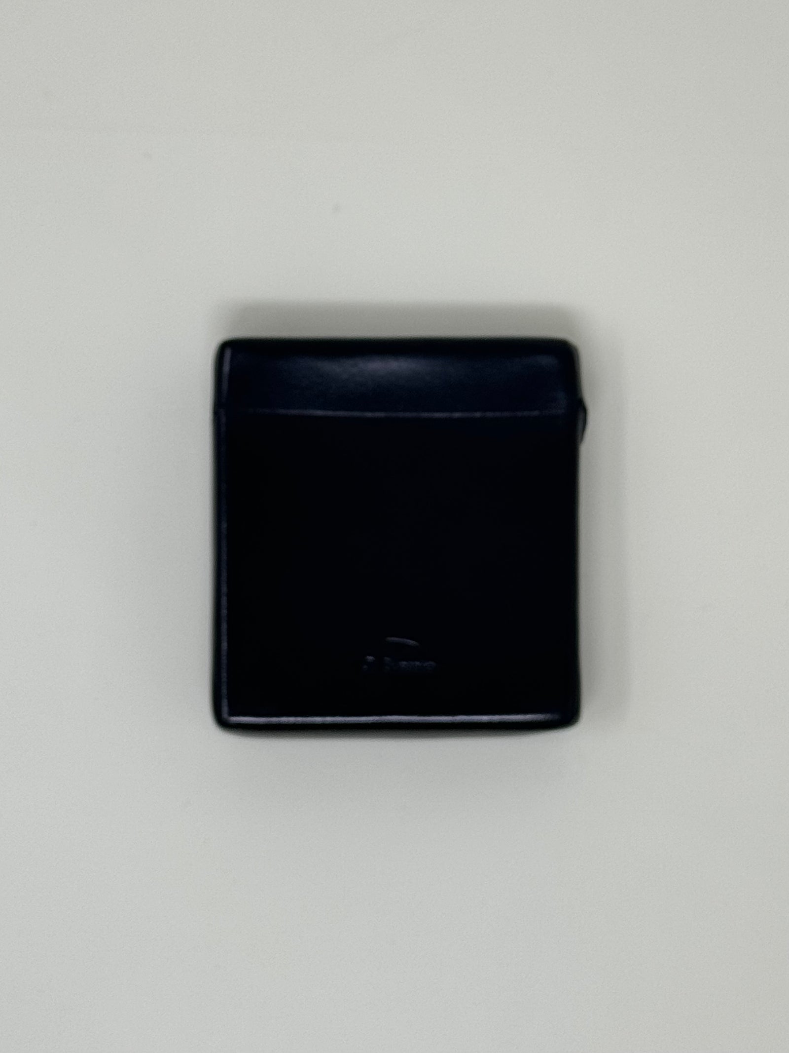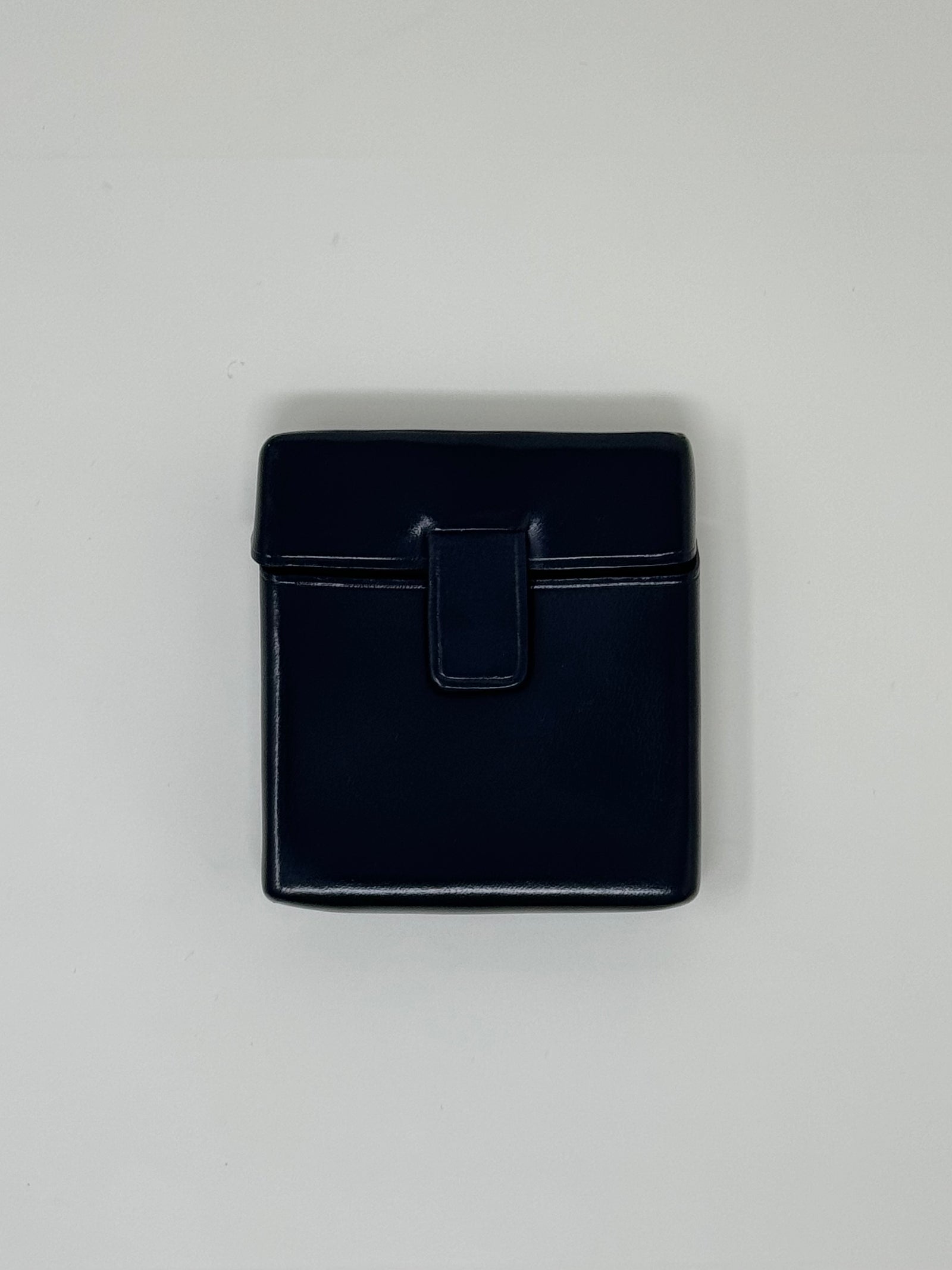 Handmade from a unique piece of leather, shaped on wooden form, this cigarette case features a flap with a magnet closure.