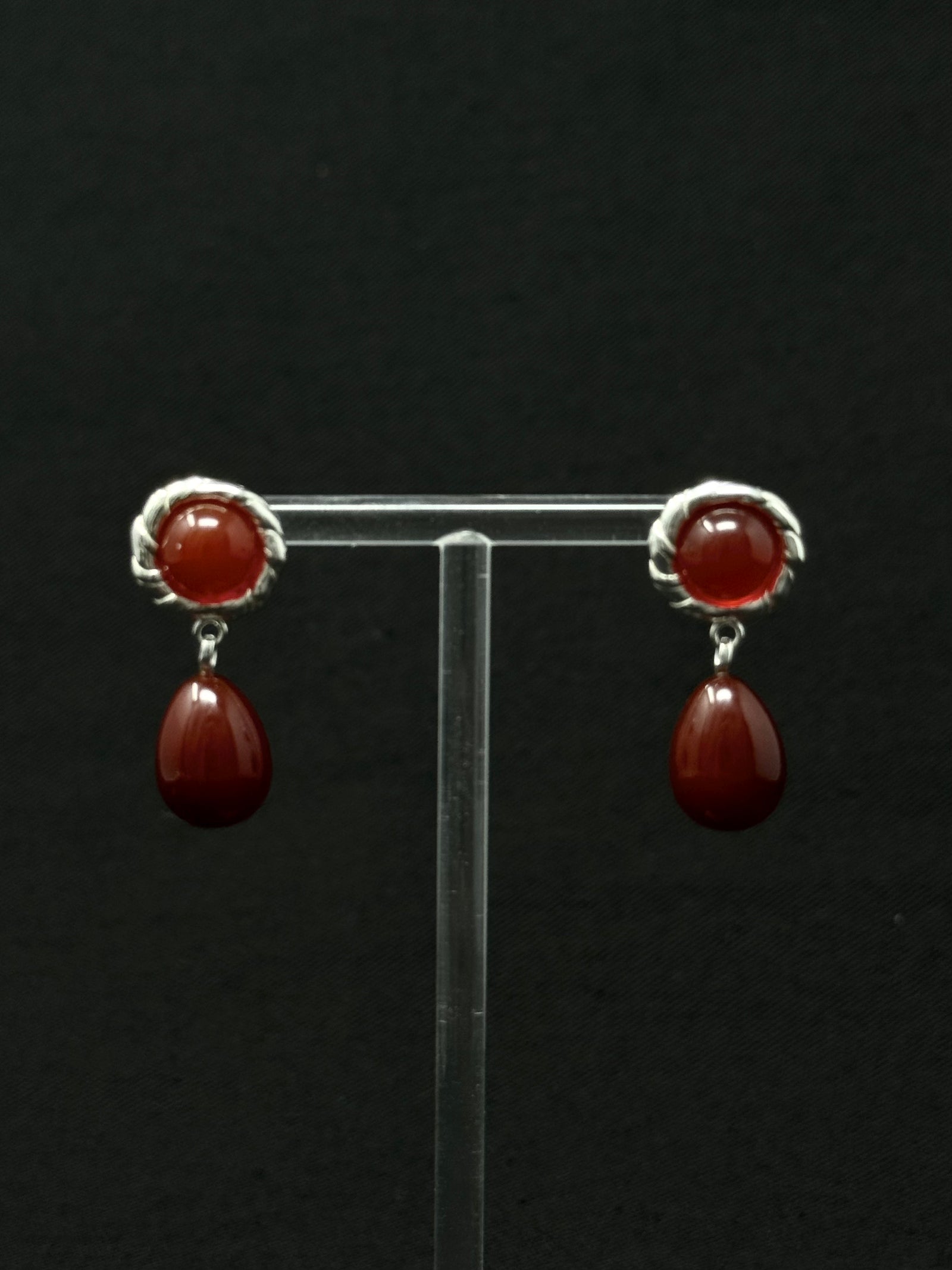 Pair of recycled sterling silver earrings with carnelian stones
