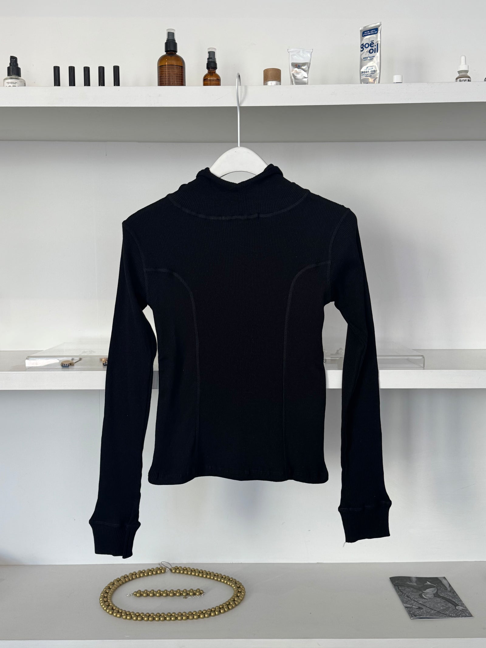 Recycled cotton hoodie. High neck. Thumbholes.