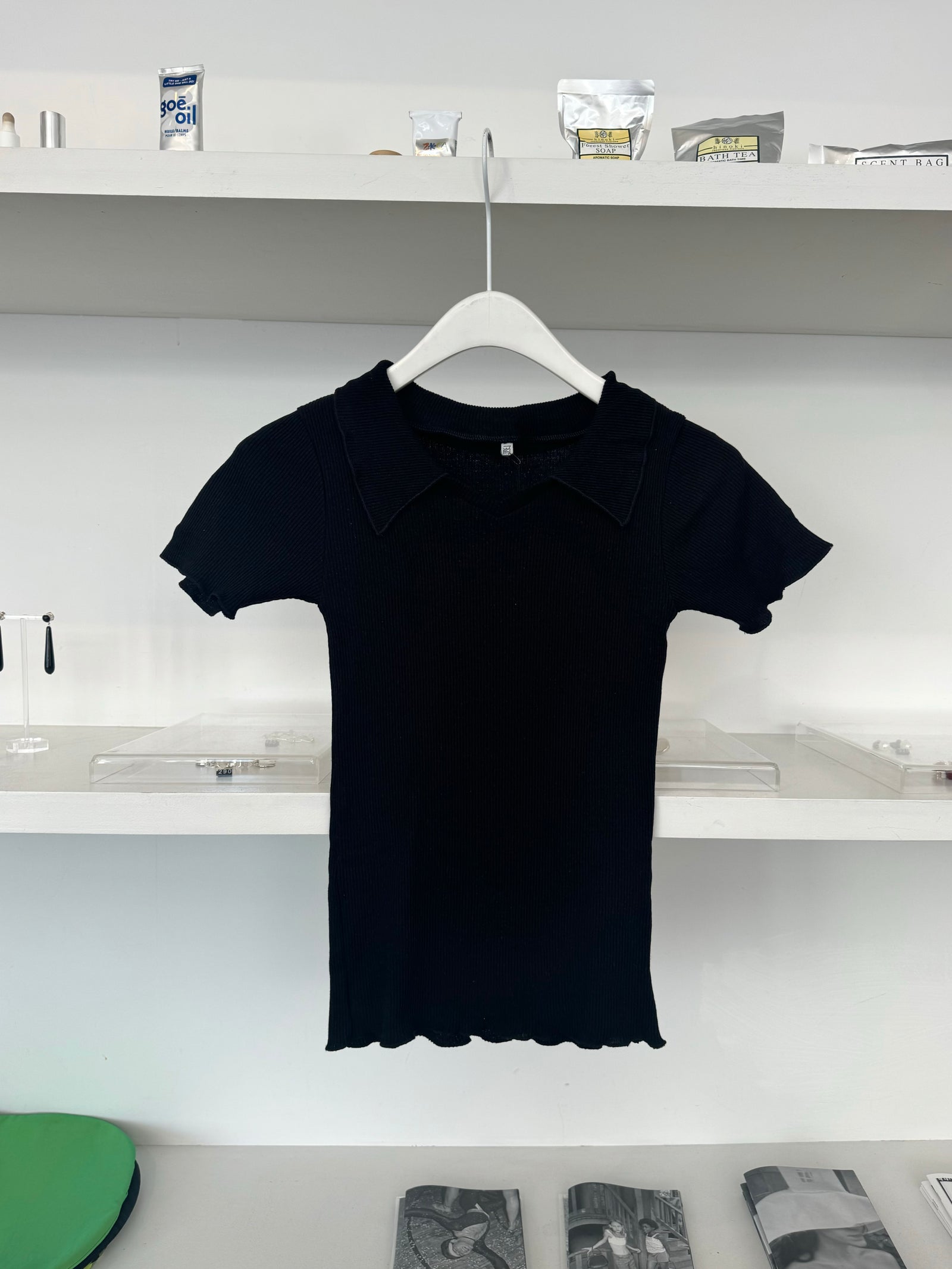 Recycled cotton rib top. V Neck with collar. 3/4 sleeves