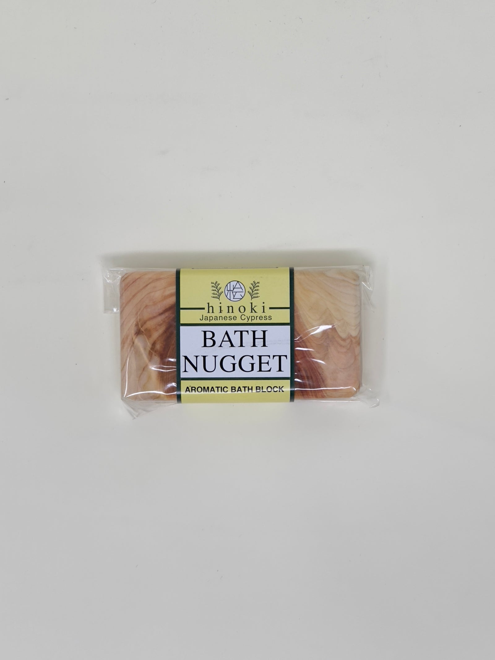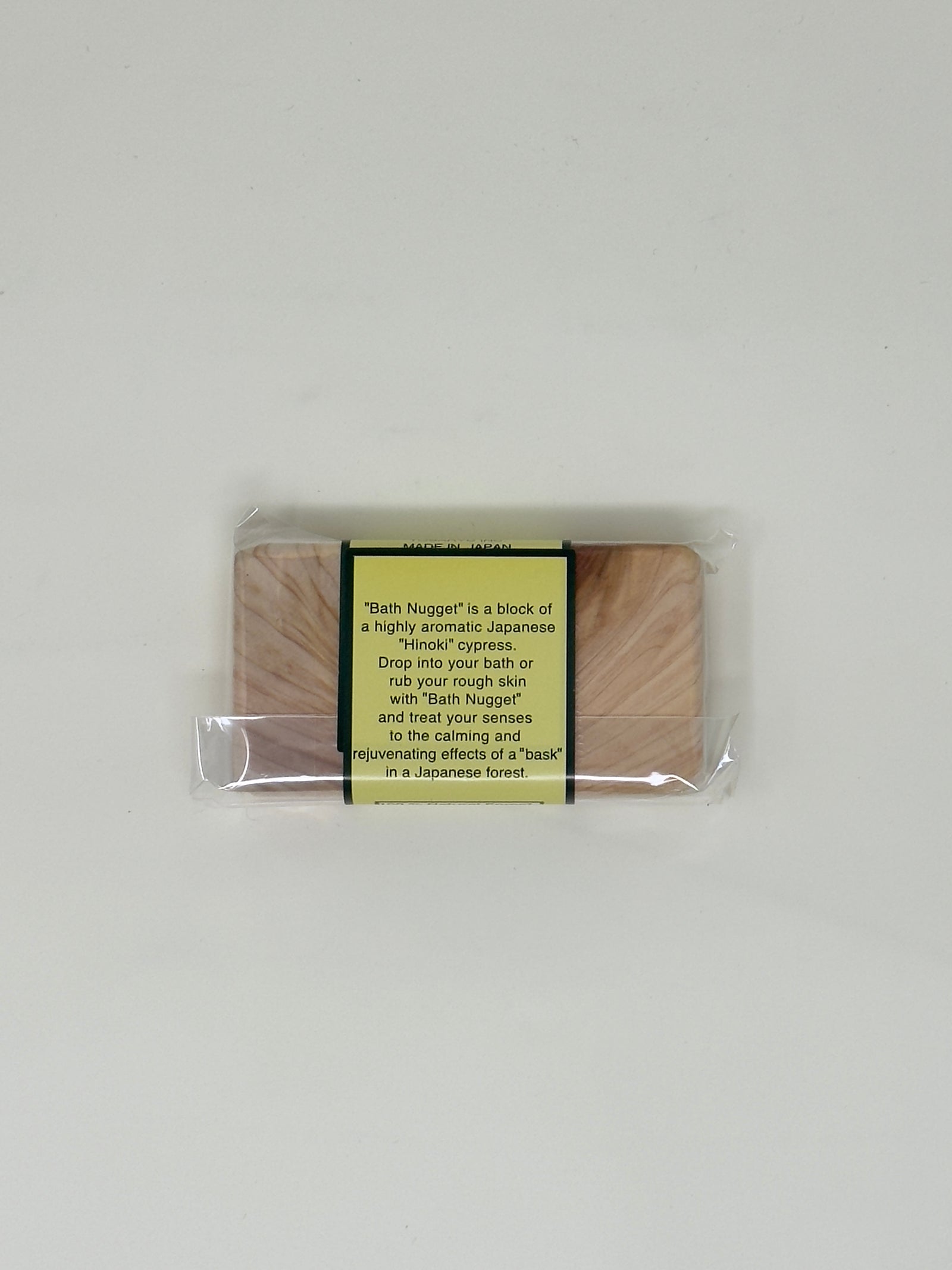Crisp and aromatic Hinoki wood bath nugget. Add to each bath to turn any soak into Japanese onsen. Hinoki is naturally antibacterial and resistant to mold and rotting and can be rubbed on your skin and feet to remove dry skin.