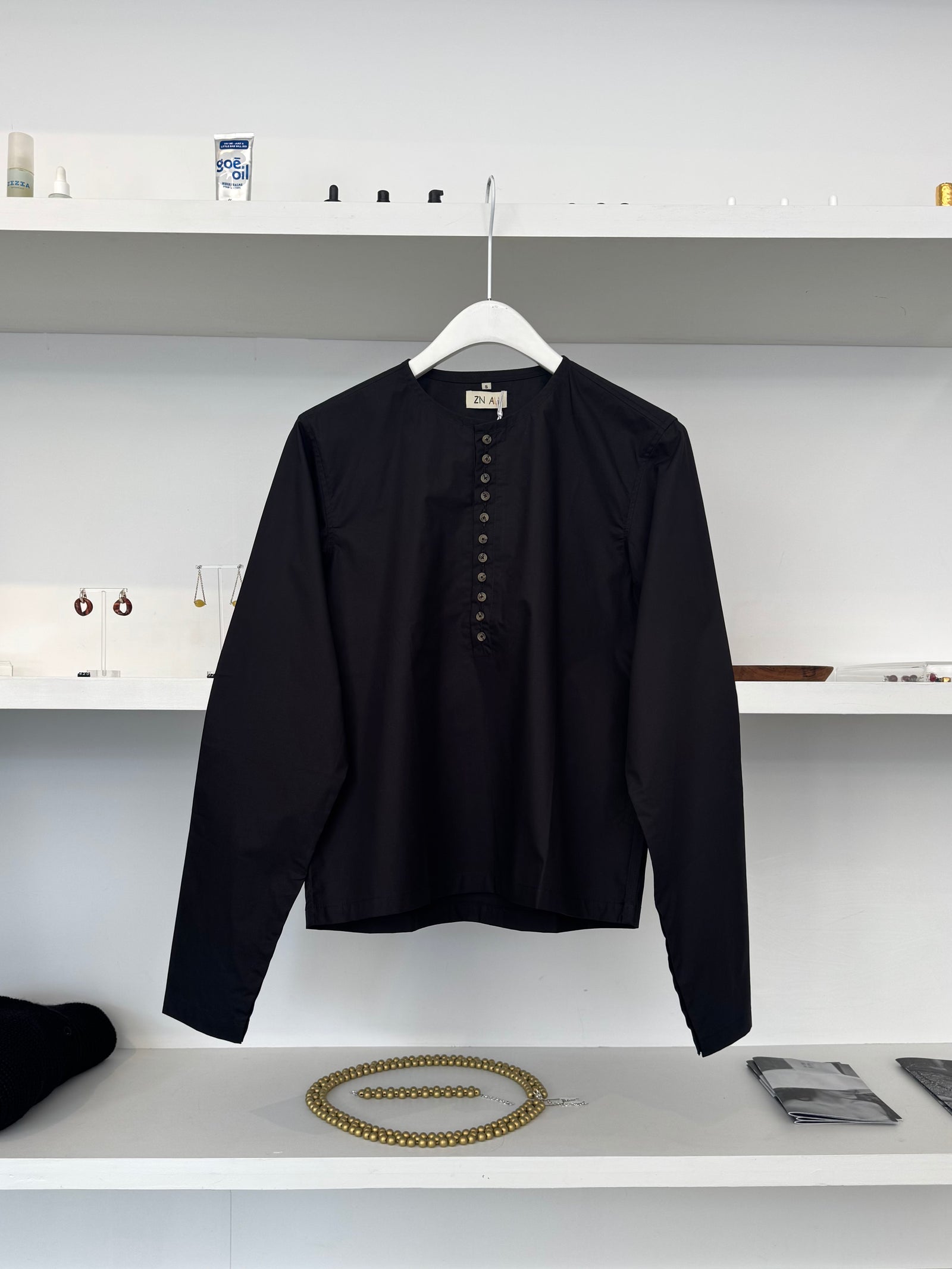 Shirt with a loose, cropped fit and buttoned, gathered sleeves.
