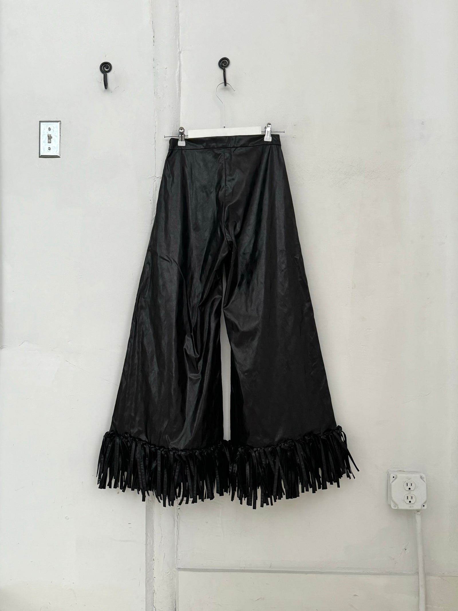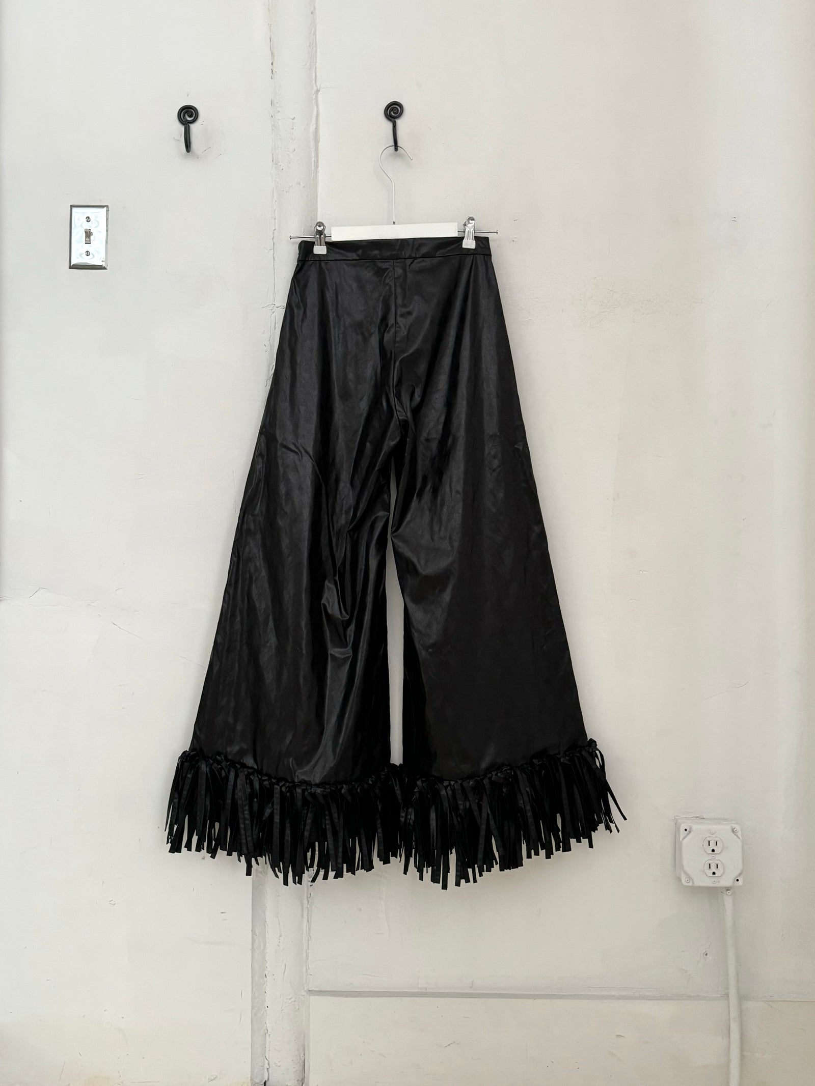 Wide Leg trousers with thin bands around the hem. Invisible zipper in the back.