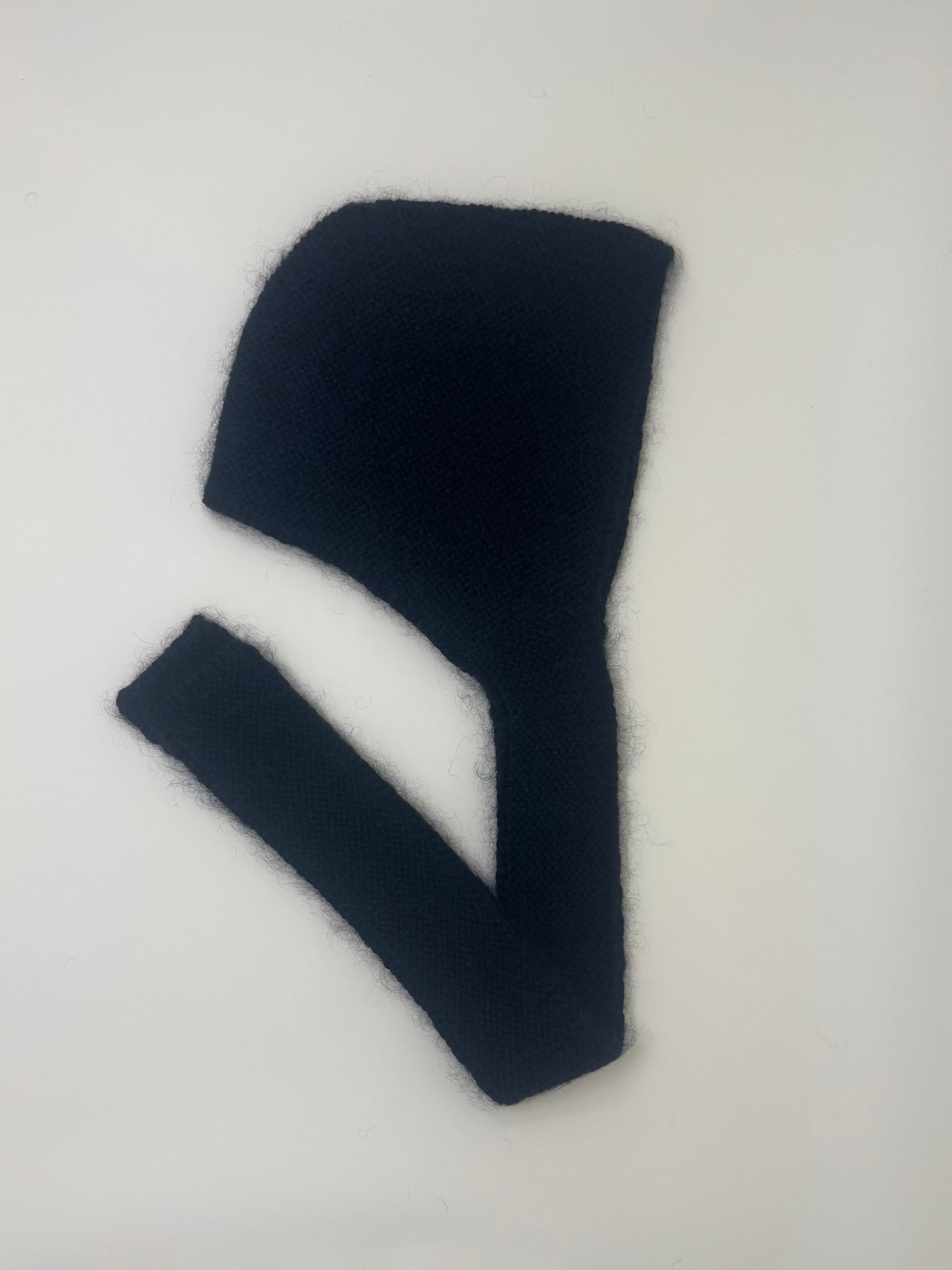 A soft hood with extended collar and narrow strap. designed for warmth and ease, made from italian-spun yarns with a light, brushed texture. developed in the netherlands and produced in serbia.