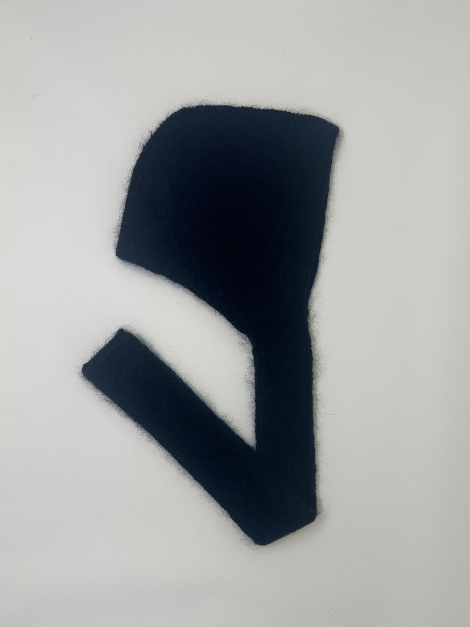 A soft hood with extended collar and narrow strap. designed for warmth and ease, made from italian-spun yarns with a light, brushed texture. developed in the netherlands and produced in serbia.