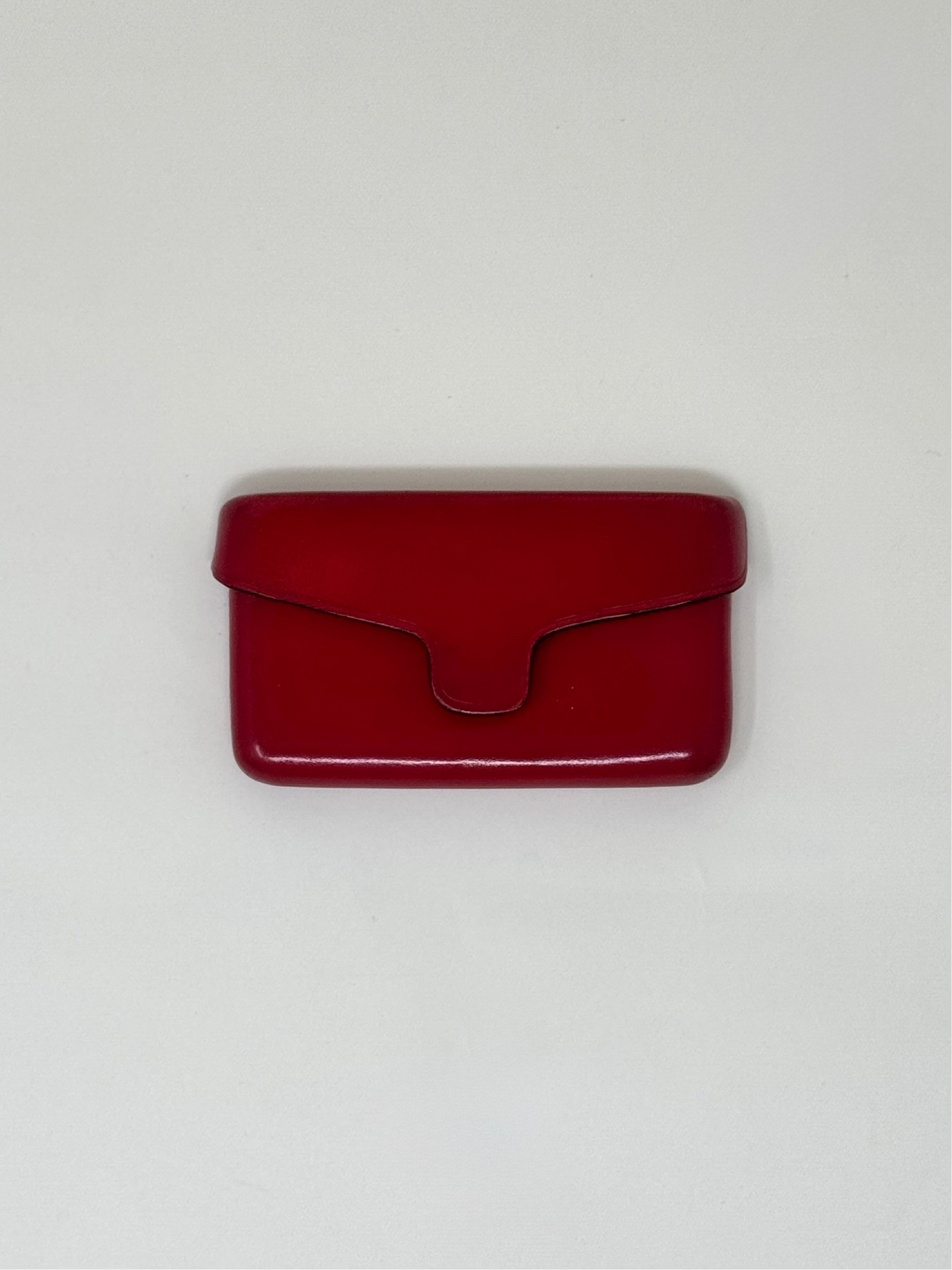 Handmade from a unique piece of leather, shaped on wooden form, this business card holder holds up to fifteen business cards and it is perfect to fit in a pocket.