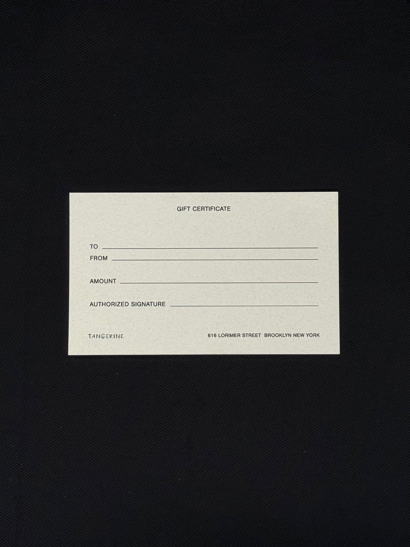 If the amount you wish to gift is not included in the denominations below, please contact customer service for additional requests: info@tangerine-nyc.com