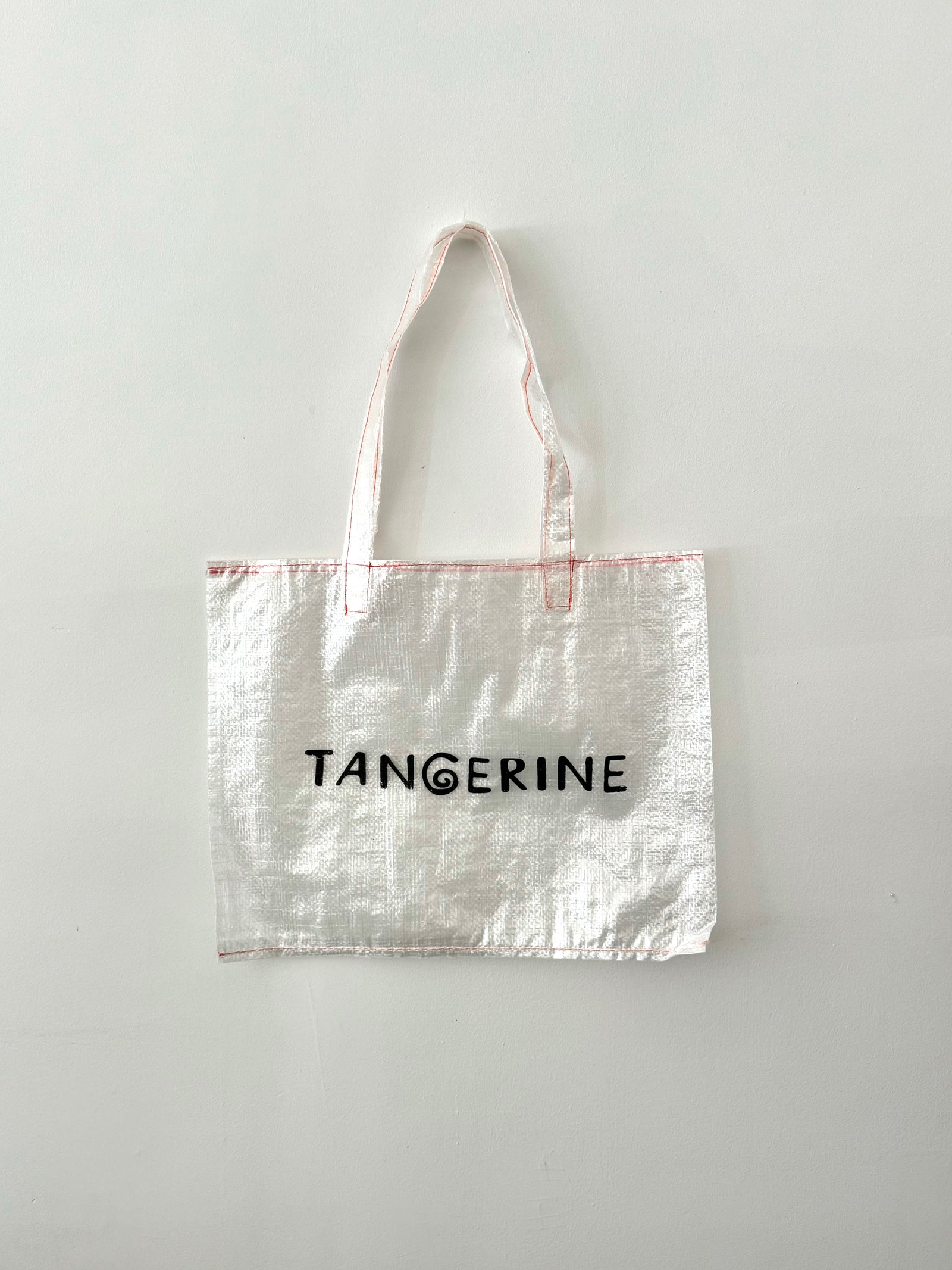 Small Tangerine tote bag made in Oaxaca from recycled plastic.