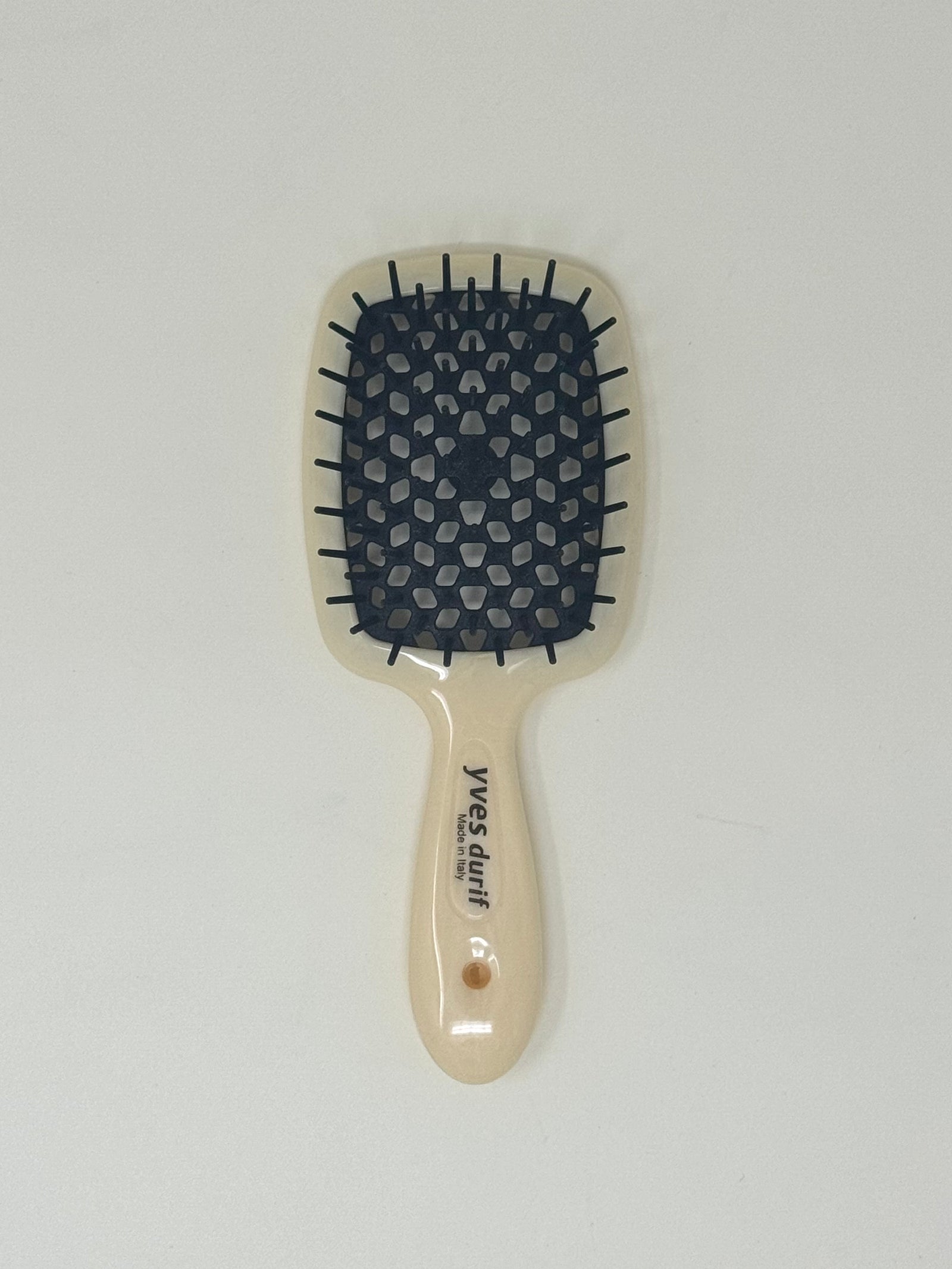 Handmade in Italy of Natural Rubber Resin and Carbon Fiber, the  Petit Vented Brush is tiny but mighty! Boasting the same number of bristles as it’s full-sized counterpart, this extremely lightweight brush is the Ultimate Detangler both at home or on the go, and its concentration of bristles offers a rejuvenating scalp massage.