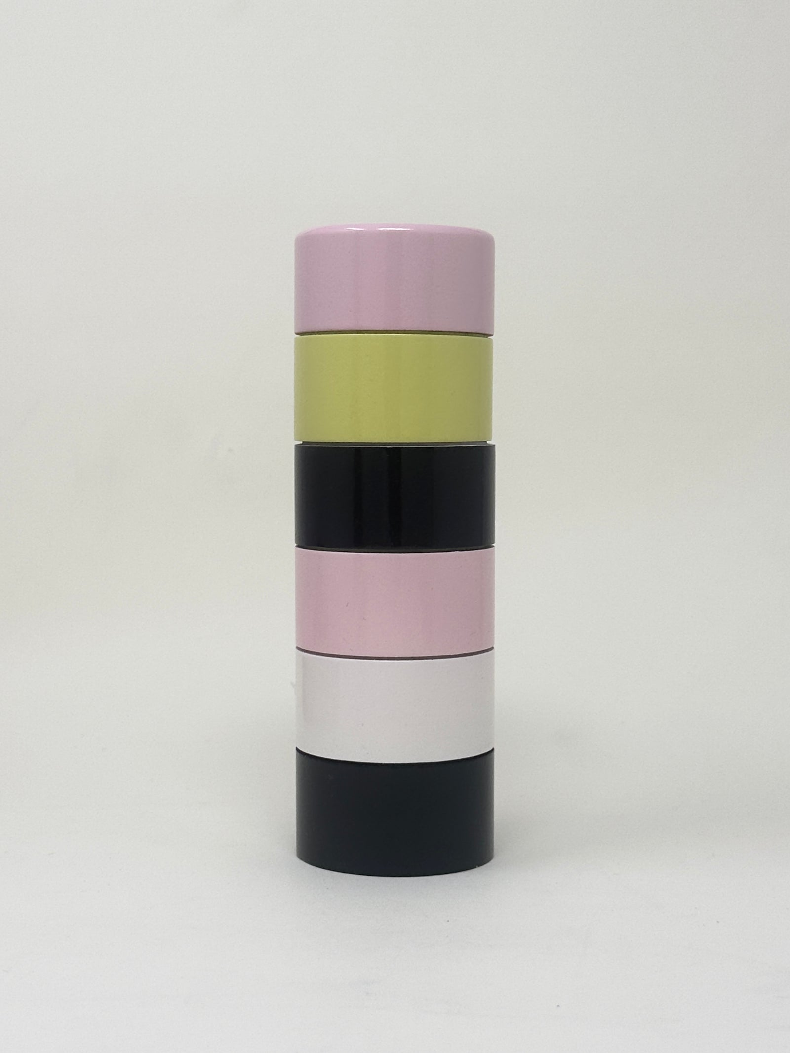 Designed by co-founder Sabrina de Sousa, the Dimes Peppermill is hand-turned in Pennsylvania from local wood. Each item is hand-painted in a unique array of colors in Chinatown, NYC.