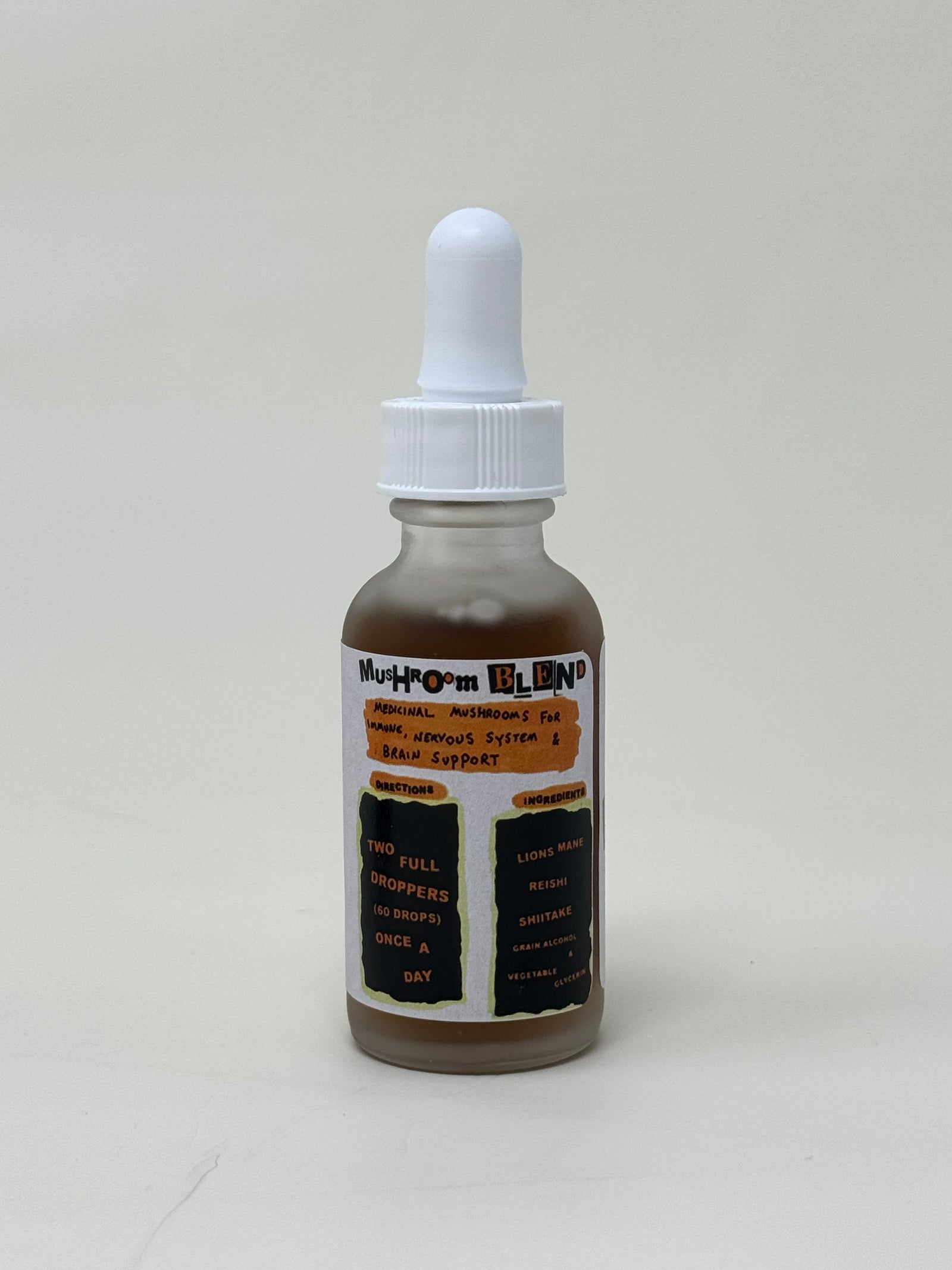 Ingredients: Lion’s Mane Mushroom, Shiitake Mushroom, Reishi Mushroom, grain alcohol. Hot water double extracted.