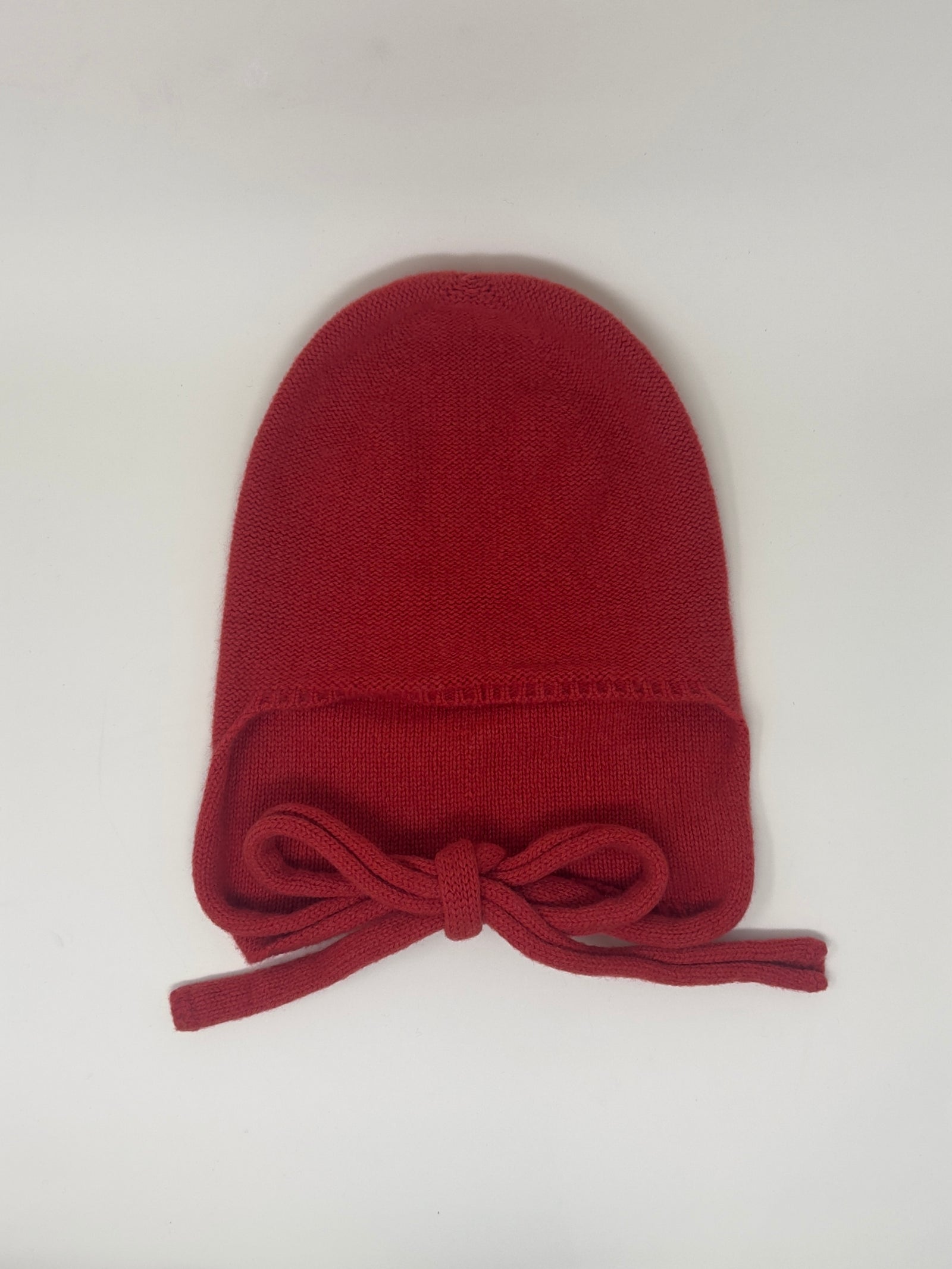 Recycled cashmere knitted hat. Ties at side